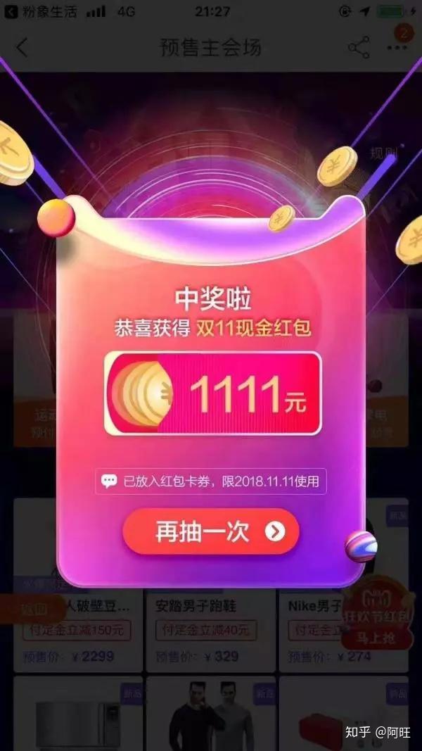 10.21-11.11超级红包天天有;11.01-11.11号明星、店铺口令红包,固定2元/个,每天可得2个;11.1号之后,看视频答题红包,面额不等,也不会太大;砸金蛋赢红包,乐呵乐呵就行;店铺抽奖得红包,一般像家电,汽车这类的店铺,发钱每人0.5-2块,也是很大方了!