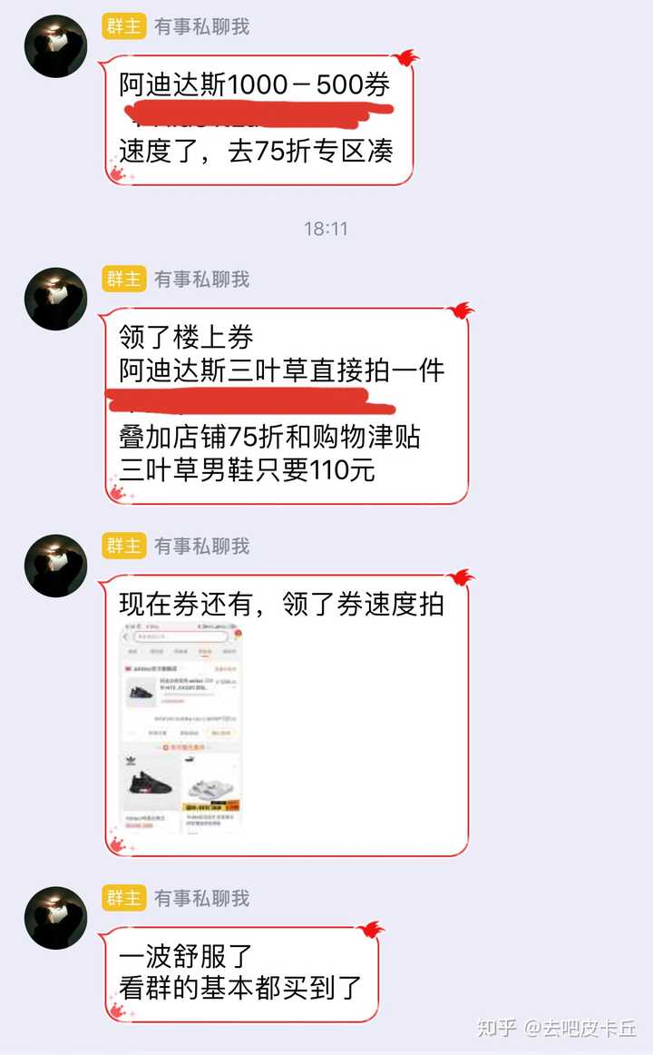 这个阿迪达斯三叶草鞋子就是在群里领到大额优惠券后再叠加店铺折扣只要100块钱