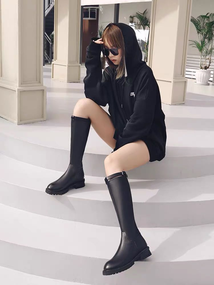 而且这款靴子还送图上的卫衣哦,平跟比较适合那种酷girl风格,穿起来也不累脚。